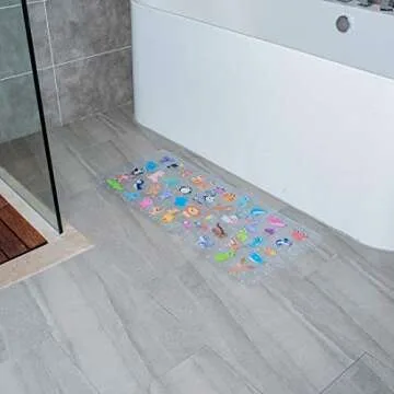 Show moreTransform your bathroom experience with the BEEHOMEE Bath Mats for Tub Kids, a delightful addition designed specifically for ensuring safety and enjoyment in water activities. Measuring an impressive 35 x 16 inches, this bath mat offers ample coverage, effectively eliminating exposed areas that could pose a risk for slips. With hundreds of resilient suction cups securely holding the mat in place on smooth, clean surfaces, this mat is suitable not only for home use but also in gyms, spas, and more. The vibrant and playful patterns of cute sea fish ignite children's imaginations, making bath time a fun and engaging experience!