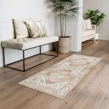 Beeiva Boho Washable Kitchen Rug, Khaki 2x5 Runner Rug Non Slip Ultra Thin Floor Carpet Runner, Print Distressed Tribal Laundry Room Rug Runner for Hallway Bedroom Bathroom