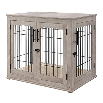 Show moreIntroducing the beeNbkks Furniture Style Dog Crate End Table, the perfect blend of functionality and aesthetics for pet lovers! Designed with both your dog’s comfort and your home’s elegance in mind, this exceptional dog kennel not only serves as a cozy retreat for your furry friends but also enhances the decor of your living space. Crafted using durable materials, it features high-quality metal wire for strength and stability, making it suitable for trained medium to large dogs. The weathered gray finish gives it a chic rustic appeal that complements various home styles.