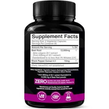 Quality is our top priority! Proudly produced in a GMP-certified and NSF-approved manufacturing facility in the USA, our beetroot extract capsules are guaranteed to meet the highest standards of quality. With a focus on your needs, they are free from gluten, soy, eggs, dairy, nuts, and harmful fillers or preservatives. We are so confident in our product that we back it up with a money-back guarantee. If you're not 100% satisfied, simply let us know!