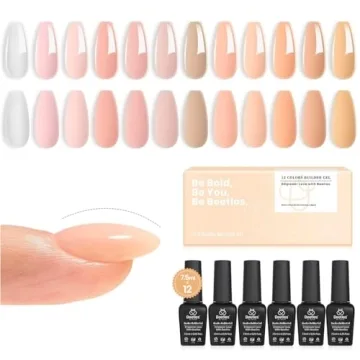 Show more The Beetles Builder Gel for Nails is a game changer in the world of at-home manicures, expertly designed to cater to both professionals and DIY enthusiasts. This comprehensive kit features 12 captivating shades, including clear, pink, nude, and brown tones, crafted to complement various skin tones and enhance your nail artistry. Each 7.5ml bottle is filled with premium-quality self-leveling hard gel, allowing for effortless application and stunning results. Whether you're looking to strengthen thin nails, create intricate nail designs, or apply extensions, this multifunctional gel is your go-to solution!