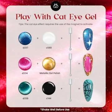 Show more This incredible Beetles 20 Colors Glitter Cat Eye Gel Polish Kit is the ultimate addition to any nail enthusiast's collection! Packed with 20 stunning colors, each in a 5ml bottle, and accompanied by 3 no-wipe base and top coats (glossy and matte) at 7.5ml each, this set is perfect for creating mesmerizing nail designs right at home. Included in the kit is a dual-end pen and a magnet, allowing you to achieve a variety of striking cat eye designs that change color based on the angle and light. Whether you're aiming for a galactic effect or a subtle aurora look, the possibilities are endless! With its vibrant colors and unique effects, the Beetles nail polish kit ensures your nails remain the center of attention wherever you go.