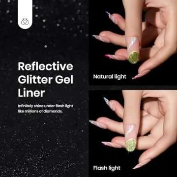 Beetles Gel Liner Nail Art, 6 Colors Reflective Glitter Gel Nail Polish Neon Purple Green Hot Pink Yellow Swirl Glow in the Dark Nail Art Polish, Sparkly Diamond Built Thin Nail Brush in Bottle