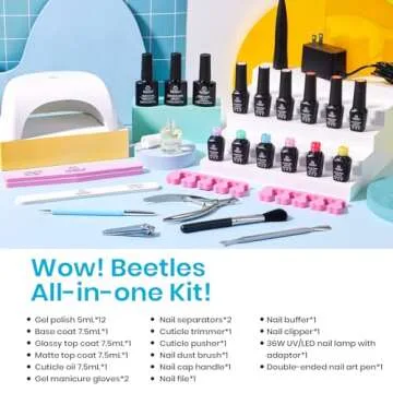 Health-conscious beauty enthusiasts will appreciate that all gels are made from 9 Toxin Free Ingredients, which means low odor and high safety. This feature is particularly appealing for those looking to maintain both beauty and health in their nail grooming practices. With the Beetles Gel Nail Polish Starter Kit, you're not just applying color; you're indulging in a self-care ritual that brightens your spirit and enhances your confidence.