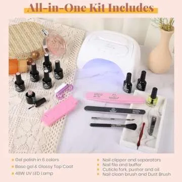 Beetles Gel Nail Polish Kit with U V LED Light 48W,6 Colors Jelly Milky White Sheer Pink Nude Gel Polish Starter Kit Manicure,Soak Off U V Gel Nail Polish Set Salon DIY Valentine's Day Gifts for Girl