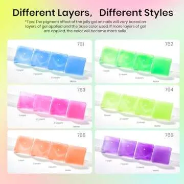 Beetles Jelly Gel Nail Polish Set, 6 Colors Jelly Blue Purple Crystal Gel Nail Polish Rainbow Yellow Green Orange Nail Gel Uv LED Dryer Cured Nail Trend Gel Nail Art Gifts for Women