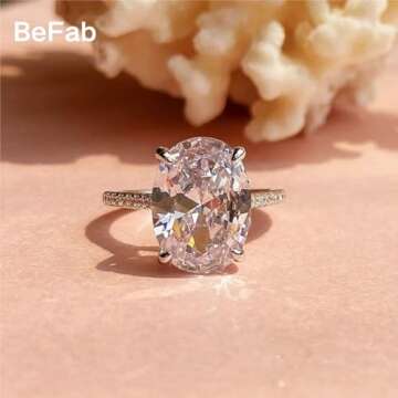 BeFab 925 Sterling Silver 14x10mm 5.81 Ct Oval Solitaire Engagement Ring Large Oval-cut Cz Cocktail Ring (5)