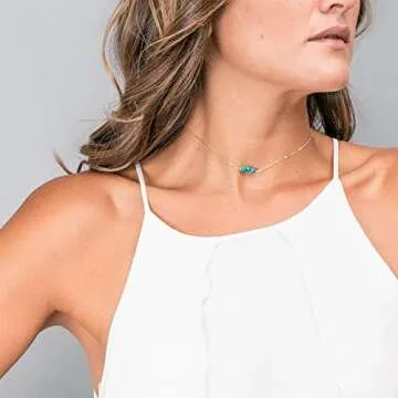 Show moreDiscover unparalleled elegance with the Befettly Women's Gold Choker Necklace, a stunning handcrafted piece that beautifully combines 14K Gold Fill with charming turquoise beads. Measuring at a classic 16.5 inches with an additional 2-inch extender, this necklace offers a customizable fit, ensuring you can wear it comfortably throughout your day. Ideal for both casual outings and formal events, this dainty necklace is designed to elevate any outfit to new heights of sophistication. Coming packaged in a delicate gift box, it makes for a cherished gift that's ready to impress!