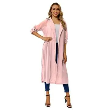 Begonia.K Women's Long Sleeve Chiffon Lightweight Maxi Sheer Duster Cardigan (Pink, Small)
