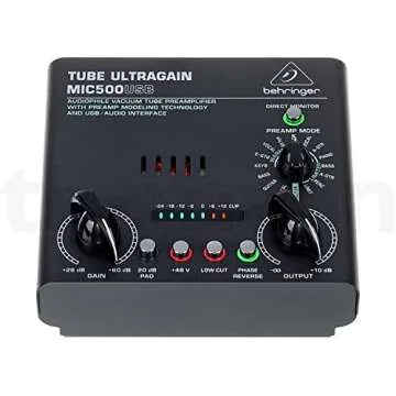 Show moreUnleash your sound’s full potential with the Behringer MIC500USB Audiophile Vacuum Tube Preamplifier. This cutting-edge preamp seamlessly combines superior analog warmth with state-of-the-art digital technology, making it the perfect choice for musicians, podcasters, and audio engineers alike. With its innovative preamp modeling technology, you can achieve professional-grade audio recordings with ease. The MIC500USB features a built-in USB audio interface, allowing for effortless connection to your computer and straightforward setup, ensuring that you never miss a moment of inspiration!