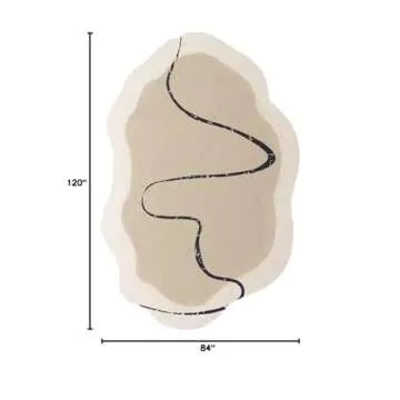 Show more Transform your living space with the Beige Modern Irregular Shaped Area Rug, designed to complement various interiors while providing comfort and functionality. Crafted from high-quality polypropylene, this ultra-soft throw rug features a unique irregular shape that enhances the artistic vibe of your home. With dimensions of 7x10 feet, it is ideal for living rooms, dining areas, bedrooms, and even home offices, offering versatile decor options for every corner of your house. Its lightweight design makes it easy to fold and store, allowing you to switch up your decor effortlessly.