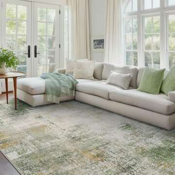 Show more The BEIMO Area Rug is more than just a floor covering; it's a statement piece designed to transform your space into a cozy haven. Measuring 8x10 feet, this modern area rug features a stunning soft green abstract pattern, ideal for enhancing the aesthetics of any living room, bedroom, or dining area. Crafted from high-quality low-pile polyester, this rug provides a plush, cushioned feel that ensures comfort without the need for extra padding. Its contemporary design beautifully combines style with functionality, making it a must-have for anyone looking to elevate their home decor.