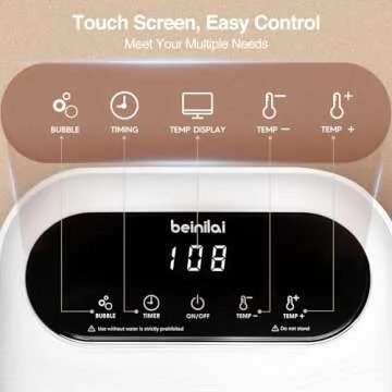 Show moreIndulge in the ultimate relaxation experience with the Beinilai Collapsible Foot Spa, your personal sanctuary for soothing tired feet. This exceptional foot massager spa is elegantly designed in a chic white finish, making it a stylish addition to any home. It features an exclusive touch screen interface, enabling effortless adjustments for temperature settings, bubble activation, and timer controls with just a gentle tap. Whether you are unwinding after a long day at work or treating yourself to a rejuvenating home spa experience, this foot spa caters to all your wellness desires.