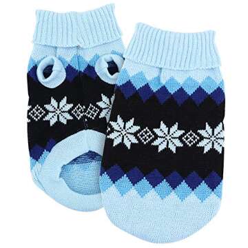 Beirui Cute Dog Christmas Sweaters for Small Dogs Cats, Soft Puppy Clothes Xmas Pullover, Winter Warm Dog Turtleneck Sweater for Puppies, Blue Chest 14-18’’