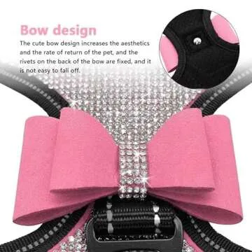 Show more Introducing the Beirui Rhinestone Dog Harness – a dazzling combination of style, safety, and comfort designed specifically for your precious pup! Ideal for dogs weighing between 8-18 lbs, this sophisticated harness is not just about looks, it’s engineered for ease and functionality for both you and your furry friend. Crafted from premium suede microfiber with a breathable mesh lining, it offers a soft and skin-friendly experience. The large rhinestone embellishments and cute bow tie ensure your pet stands out whether you're taking a leisurely walk or attending a festive gathering.