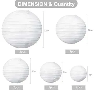 BEISHIDA 10Pcs White Paper Lanterns Decorative Chinese/Japanese Hanging Round Paper Lanterns Lamp for Birthday, Wedding, Christmas, Bridal, Home Decor, Party Decoration(Size of 4”, 6”, 8”, 10”)