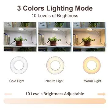 Show moreIlluminate your workspace with the Bekada LED Desk Light with Clamp—your ultimate solution for achieving perfect lighting during video conferences, reading, and more! This versatile clip-on LED ring light offers a remarkable blend of functionality and style, featuring three color temperatures and ten adjustable dimming levels to create the ideal ambiance for any occasion. Its sleek, silvery design not only complements any setup but also provides the brightness you need for professional-looking Zoom meetings or flawless makeup application.