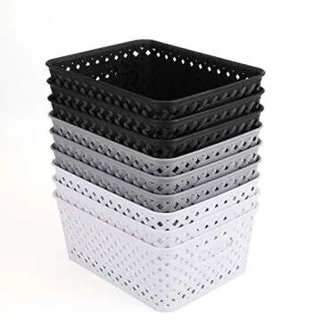 Bekith 9 Pack Plastic Storage Basket, Organizer Tote Bin for Closet Organization, De-Clutter, Accessories, Toys, Cleaning Products and More
