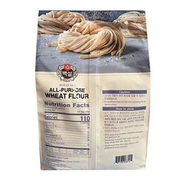 Show moreDiscover the secret to baking perfection with Beksul Korea's Best 100% Wheat All-Purpose Flour. Hailing from Korea, this premium quality flour is finely milled for a smooth texture and superior performance in a variety of recipes. Whether you’re whipping up light pastries, fluffy cakes, or hearty breads, its versatile 5.5 lb packaging ensures you'll have enough to create all your culinary delights. Made from 100% wheat, it offers a high protein content, giving your baked goods the ideal structure and chewiness.