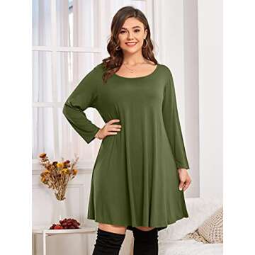 Show moreIntroducing the BELAROI Womens Fall Dresses – a perfect blend of comfort and style for every plus size woman. Crafted from super soft and breathable fabric, this casual swing tunic dress is designed to cater to the diverse needs of women today. Whether you're a vibrant plus size woman or expecting, this versatile dress fits all body types with ease, thanks to its good amount of stretch and softness. The 3/4 sleeves provide just the right amount of coverage, making it ideal for any season. Style it up with boots for a trendy look or add a cardigan and leggings for warmth in the winter. No matter how you choose to wear it, you’ll find this dress to be your new go-to for casual outings and special events alike.