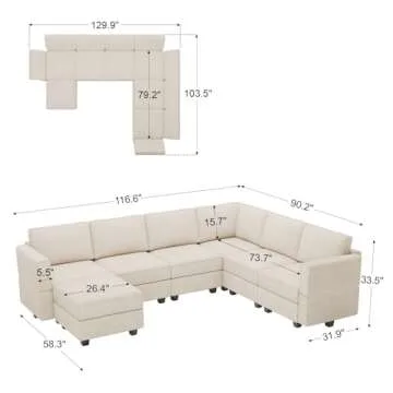 Show moreIntroducing the Belffin Modular Sectional Sofa with Storage Ottoman, where comfort meets versatility in an inviting corduroy fabric. This oversized U-shaped sectional couch is designed to enhance your living space, providing ample room for family gatherings or cozy movie nights. The ingeniously crafted modular design allows for not just a beautiful aesthetic but also for strategic functionality; the wide armrests and meticulously designed backrests ensure both support and relaxation, making this the perfect addition to your home decor.