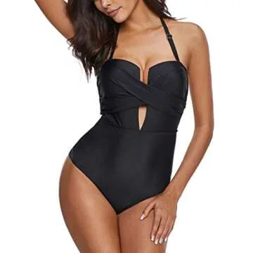 Show moreExperience elegance and confidence in the Belgius Women Halter Push Up High Waist Monokinis One Piece Swimsuit. Crafted for the modern woman who demands both style and support, this bathing suit features a removable and adjustable halter strap, ensuring a perfect fit tailored to your personal preference. The wireless built-in bras offer fantastic support and shaping for a flattering silhouette, allowing you to feel beautiful and comfortable while soaking up the sun. With unique front twist and deep plunge detailing, this swimsuit combines chic design with a flirty flair, making it a head-turner on the beach or by the pool.