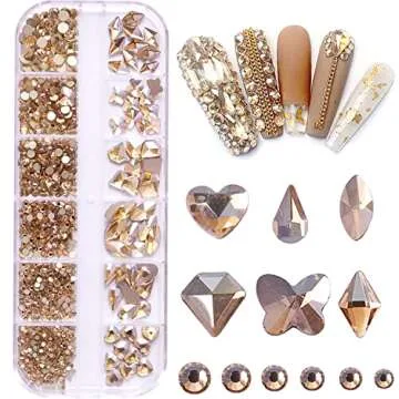BELICEY Nail Rhinestones Kit 800PCS Multi-Shape Gold Rhinestones for Nail Crystals Decoration Nail Hearts Butterfly Charm Nail Dimond Gems Stone for Nail Art Jewels DIY Crafts Clothing
