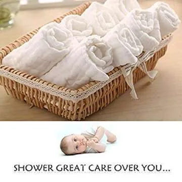 BELIZ - 100% Organic Cotton Muslin Baby Burp Cloths 10" to 20" Large 5 in a Pack 9 Layers Extra Absorbent and Soft Unisex Cloth Diapers Baby Washcloths (White)