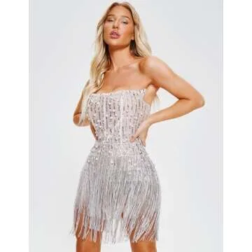 Show moreStep into the spotlight with the exquisite BELLA BARNETT Fashion Sequin Dress, a stunning silver cocktail dress designed to capture attention and transform every moment into a celebration. This trendy bodycon dress features a captivating tube style adorned with shimmering pearls and an array of silver sequins, ensuring that you dazzle with every turn. The unique design showcases a fringed hem that adds a playful touch to your ensemble, making it the perfect choice for any stylish soirée. Be ready to shine bright whether you're attending a cocktail event, an evening party, or a glamorous homecoming. Choose this sexy dress to embody elegance and confidence.