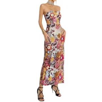 Show moreIntroducing the BELLA BARNETT Gorgeous Floral Dress, a stunning fusion of elegance and playfulness designed for women who love to stand out at any event. Crafted from high-quality materials, this incredible dress boasts a captivating floral pattern adorned with sequins, offering an eye-catching sparkle that is perfect for various summer occasions. With its flattering bodycon fit and a chic strapless design, it beautifully accentuates your figure while providing comfort and ease of wear, making it an excellent choice for garden tea parties, beach outings, or evening soirees.