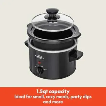 bella Electric Slow Cooker 1.5 Qt, Dishwasher Safe Removable Stoneware Pot and Glass Lid, Adjustable Temperature & Cool Touch Handles, Portable Mini Rice Cooker, Baby Food Steamer & Soup Warmer, Black