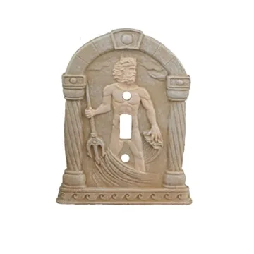 Show more Introducing the BELLA HAUS DESIGN Poseidon God of The Sea 3D Sculpted Light Switch Cover, a stunning and whimsical addition to your home decor. This unique light switch plate cover transforms a mundane fixture into a captivating piece of art inspired by Greek mythology. Crafted from durable polyresin, this single toggle wall switch plate showcases a magnificent and intricately detailed 3D sculpture of Poseidon, the revered god of the sea. Whether you’re looking to add character to your bathroom, living room, or a cheeky boudoir, this standout piece will surely spark conversations and interest.