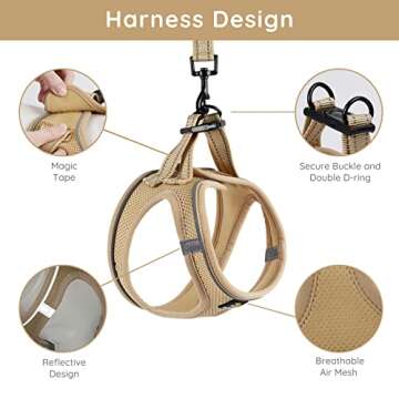 BELLA & PAL Puppy Harness with Leash Set, Dog Harness for Small Dogs No Pull, Dog Leash for Small Dogs, Step in Harness for Extra Small Dogs, Khaki Harness, S