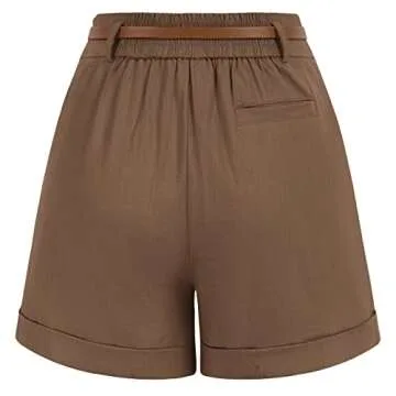 Belle Poque Women High Waisted Shorts Walking Shorts for Women with Pockets (Coffee,S)