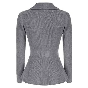 Belle Poque Women's Casual Slim Cardigan Sweater Retro Shawl Lapel Collar Cardigan Sweater (Grey, S)