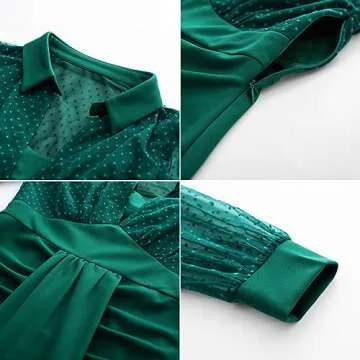 Show moreIntroducing the Belle Poque Women Vintage Dress with Slit Swiss Dot Sleeve in a delightful Dark Green shade— the perfect blend of timeless style and modern elegance. This beautiful ruched dress features exquisite mesh puff long sleeves that bring a touch of romance and sophistication. The carefully designed ruched bodice not only enhances your silhouette but also effectively conceals any unwanted tummy areas, giving you a streamlined look. With a comfortable slim fit that flatters your curves impeccably, this dress is bound to become your go-to for various occasions.