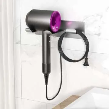 BelleJoomu Hair Dryer Holder Wall Mount Compatible with Dyson Hair Dryer, 304 Stainless Steel Hair Dryer Blow Diffuser Holder Organizer Adhesive for The Bathroom Silver