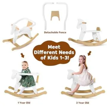 Belleur Wooden Rocking Horse for Toddler 1-3 Year Old, Baby Wood Ride-on Toys with Removable Fence for Indoor & Outdoor Activities, Boys & Girls Rocking Animal for Birthday Pink