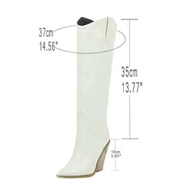 Show moreIntroducing the Bellirala Women’s Stacked Chunky Heel Cowgirl Knee High Pointed Toe Cowboy Boots! Experience the perfect blend of style and comfort with these captivating knee-high boots that are sure to elevate your wardrobe. Crafted with a trendy crocodile-print synthetic leather, these boots are not just fashionable but also built to provide a luxurious feel with every step. Featuring a meticulously designed soft pointed toe and a stable chunky heel of approximately 3.94 inches, these boots are perfect for both casual outings and formal events.