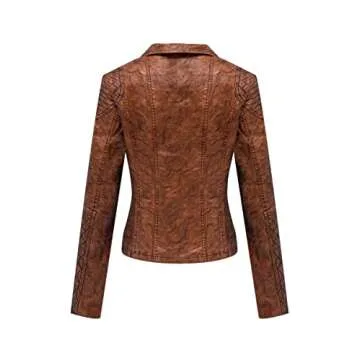 Show moreElevate your outerwear collection with the Bellivera Women's Faux Leather Short Jacket, your go-to companion for the chic and adventurous! Perfectly combining a distressed retro frosted finish with the modern moto-inspired design, this jacket is a bold expression of style that fits any occasion, from casual outings to more dressy events. Crafted with high-quality faux leather, this coat not only looks fabulous but also feels incredibly soft, ensuring you stay cozy no matter where your day takes you.