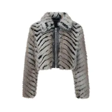 Bellivera Womens Faux Fur Leather Jacket Fleece Cropped Warm Fluffy Coat Fashion Soft Zip Outerwear 3671 black XXL