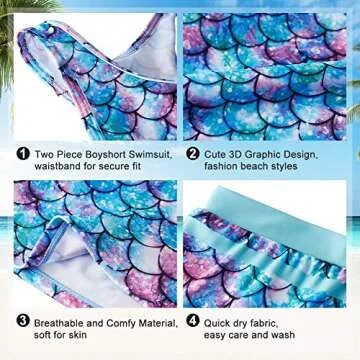 Why You Will Love This Product: Watch your little girl shine and feel magnificent while wearing the Belovecol Girls Mermaid Tankini! Its delightful designs not only make her feel stylish, but also inspire confidence in her swimming skills and overall enjoyment. This swimsuit ensures every dip in the water is met with smiles and laughter, creating fun memories for your family during those beautiful summer days.