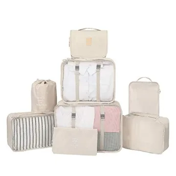 Belsmi 8 Set Packing Cubes with Shoe Bag - Travel Luggage Organizer (Style B - Beige)