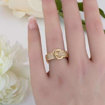 Elegant Belt Buckle Ring for Women - Gold Sparkly Jewelry Gift
