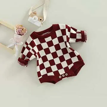 BemeyourBBs Toddler Baby Boy Girl Knit Sweater Romper Sweatshirt Soft Warm Fall Winter Clothes Matching Brother Sister Outfit (Plaid Wine Romper,3-6 Months)