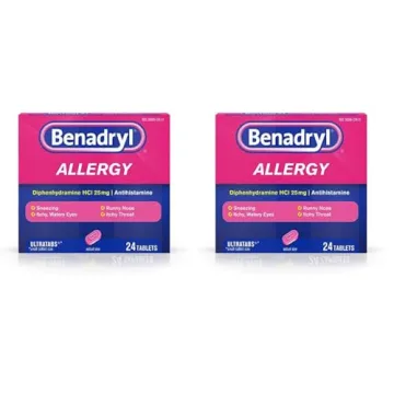Show moreExperience swift and effective relief from allergy symptoms with Benadryl Ultratabs Antihistamine Allergy Relief. These convenient tablets are formulated with Diphenhydramine HCl, a proven antihistamine that targets your body’s allergic reactions to help alleviate a range of symptoms including sneezing, runny nose, itchy throat, and watery eyes. Each box contains 24 tablets and this package includes 2 packs, perfect for ensuring you have ample supply on hand when allergy season strikes. Made in the United States, Benadryl Ultratabs embody quality and effectiveness, providing you with the peace of mind you desire during allergy flare-ups.