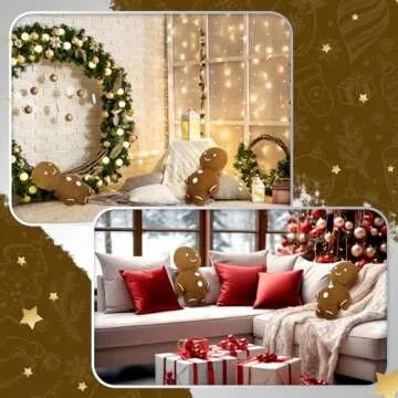 Bencailor 2 Pcs Gingerbread Christmas Pillows Plush Throw Gingerbread Men Pillows Cute Shaped Stuffed Pillows for Xmas Party Outdoor Cushion Decorations(Brown)