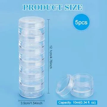 BENECREAT 10G/10ML Stackable Round Plastic Containers 5 Column(6 Layer/Column) Bead Storage Jars for Diamond Drills, Nail Art Glitters, Seed Beads