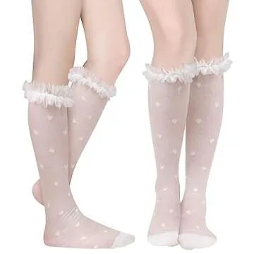Benefeet Sox Womens Girls White Lace Knee High Socks Frilly Ruffle Sheer Mesh Fishnet Knee High Stockings Novelty Fancy Dress Socks Lolita Calf Socks See Through Transparent Trouser Socks White Ruffle