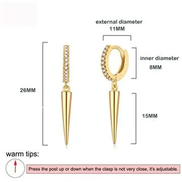 BENEIGE Long Awl Shaped Huggie Earring with Shining Cubic Zirconia 14K Gold Plated Hoop Earrings for Women